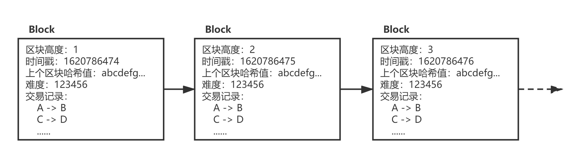 白话解释:顾名思义,区块链就是由很多区块(Block)组成的链条(Chain),每个区块上存储的是上一区块打包后产生的交易(transactions)记录,打包区块的过程称之为记账,所以区块链也被称作分布式账本。